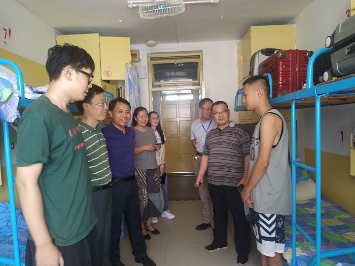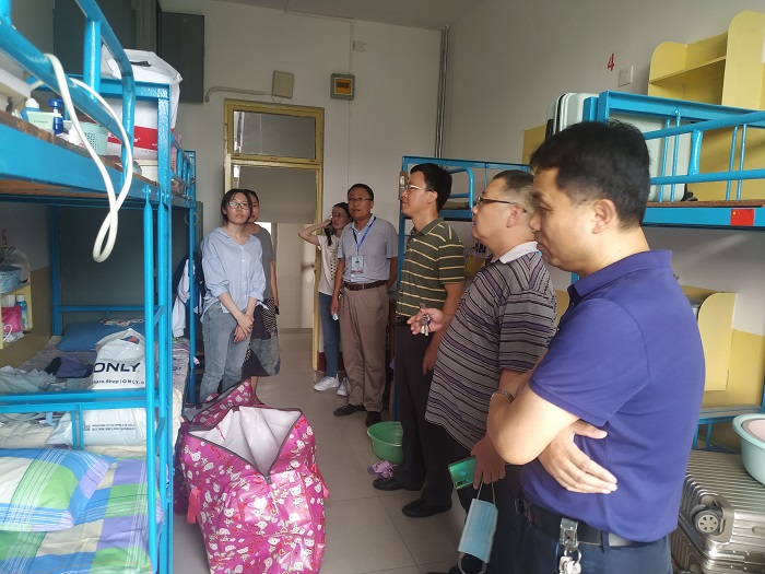 院领导还对员工宿舍环境卫生、安全设施等进行了认真细致的检查,对于发现的问题叮嘱辅导员老师及时沟通解决,确保宿舍安全。(文/图:王备备)